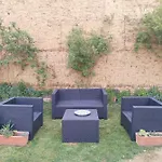 Hostel Las Hadas Albergue -Solo Para Peregrinos - Vegano -Bar Reliegos oferuje widoki na ogród w pokojach z sofą, biurkiem do pracy i miejscem do siedzenia.
